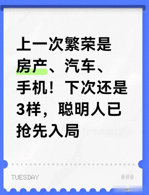 上一次高贵是房产、汽车、手机! 下次照旧3样, 理智东说念主已抢先入局